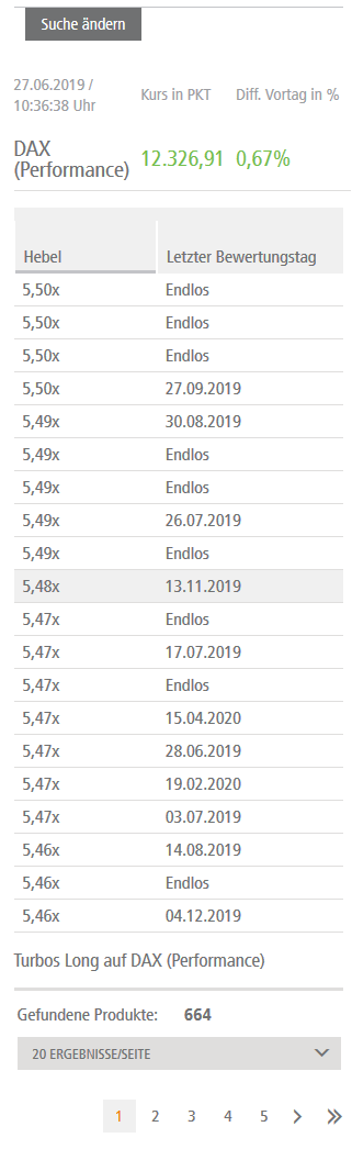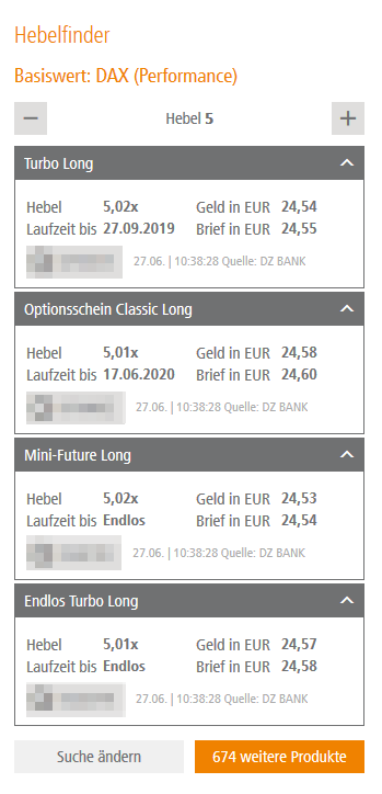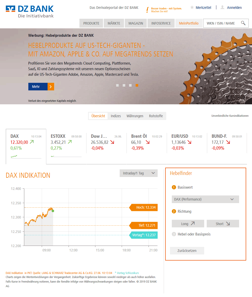 Der Hebelfinder auf dzbank-derivate.de
